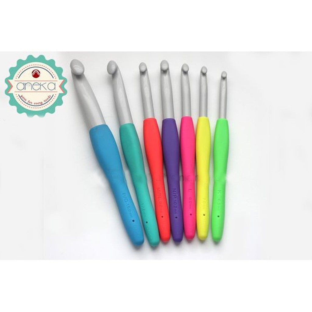 This soft hook makes knitting effortless. Amour Crochet Hook has a distinctive handle with attractive colors so that it is easy to distinguish each size. The handle is made of rubber, making knitting very comfortable and stress-free for a long time. This large size is suitable for use with thick thread.
