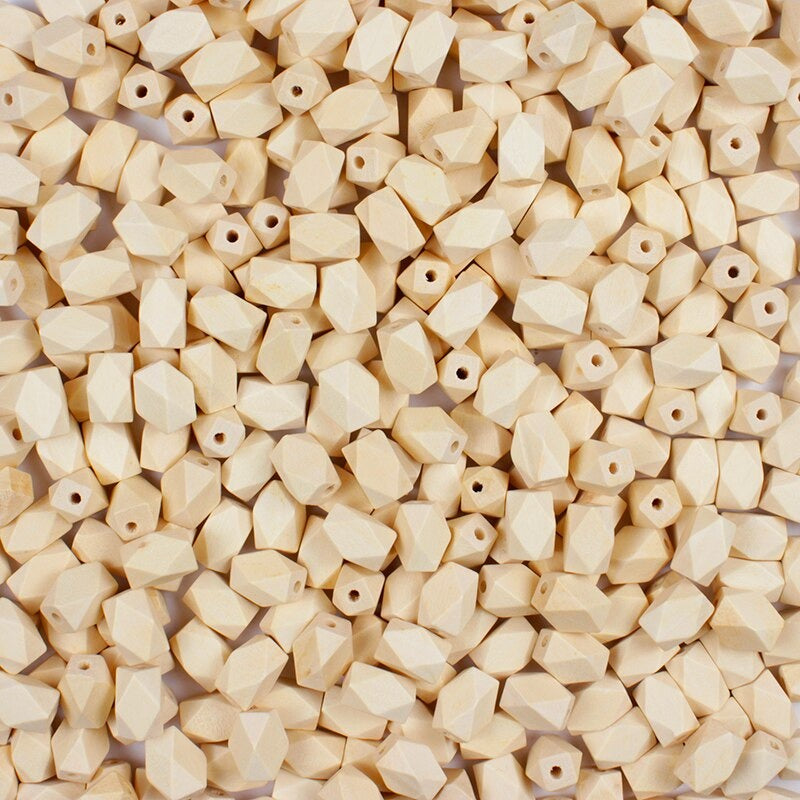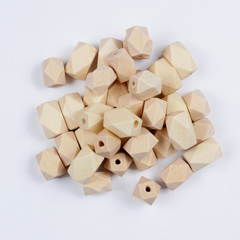 ANEKA - [6 PCS] Manik Kayu Bulat Natural / Wooden Beads Octagonal Panjang Lubang 2 cm - ISI 6
