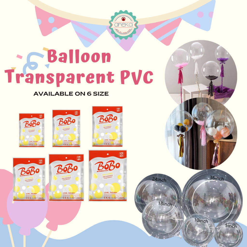 ANEKA - [ PACK ] Balon Bobo 18 24 36 inch Transparent / Ballon Bening Transparan / Confetti / Latex / Helium / PVC [50PCS]