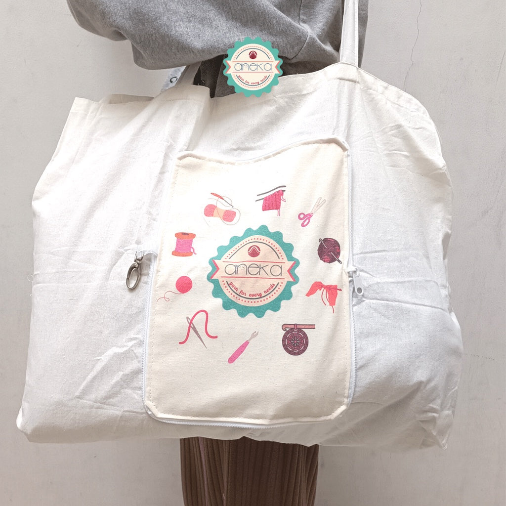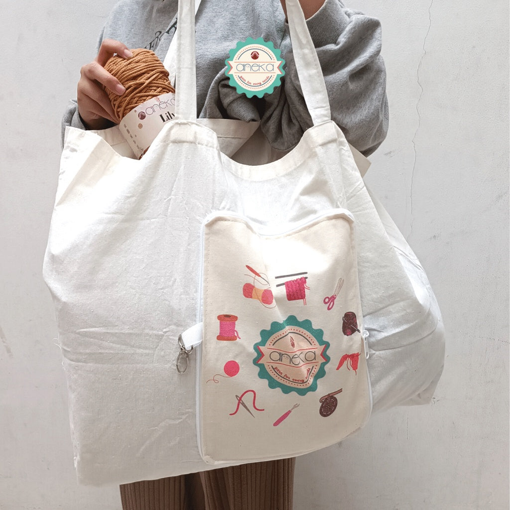 ANEKA - Tas Totebag Blacu / Tas Lipat Portable Belanja Aneka Benang Ukuran Besar XL