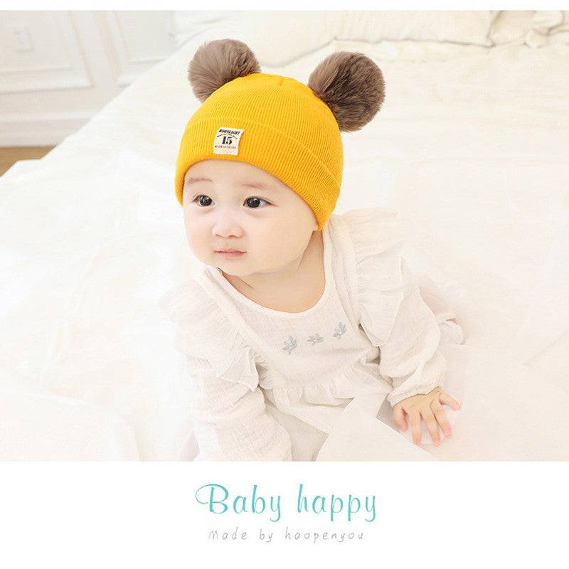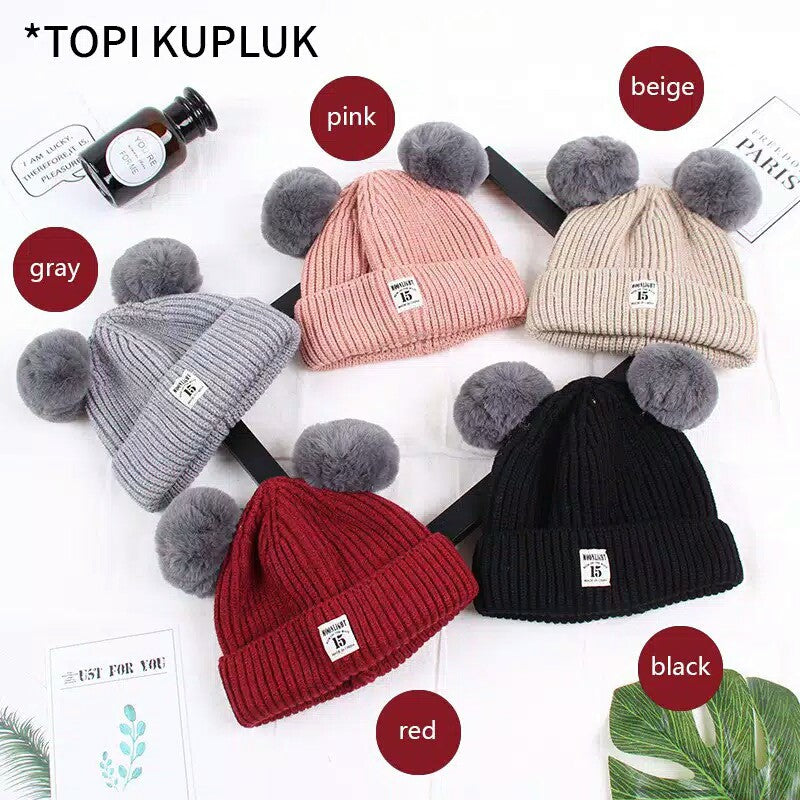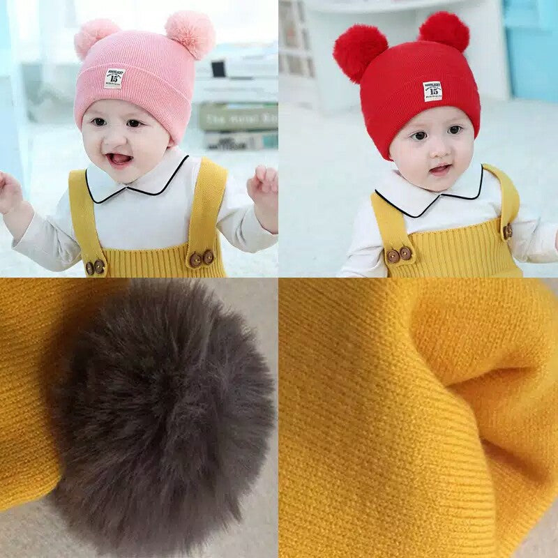 Topi dengan aksen 2 pompom diatas kepala ini membuat anak Anda terlihat semakin menggemaskan.